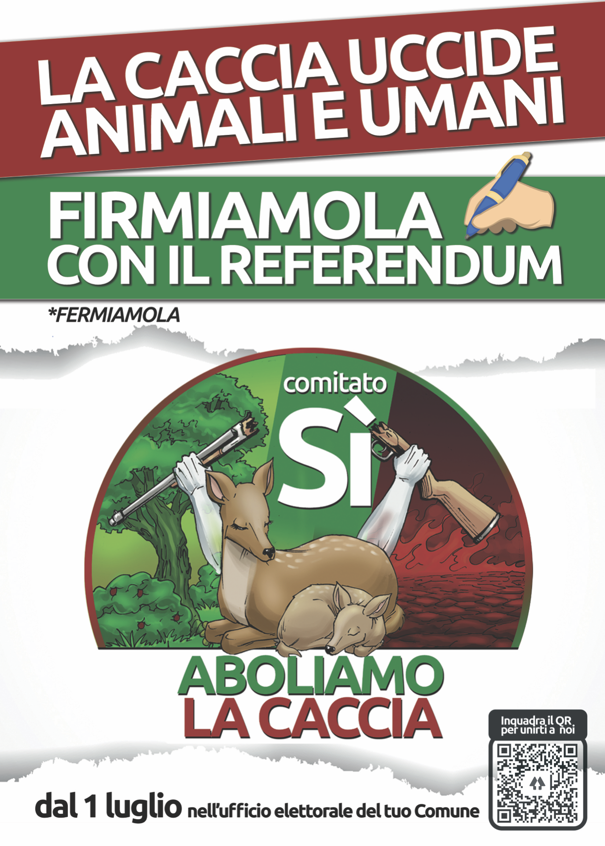 Comunichiamo che è da oggi possibile firmare presso l'anagrafe del Comune per promuovere il referendum per l'abolizione della caccia.