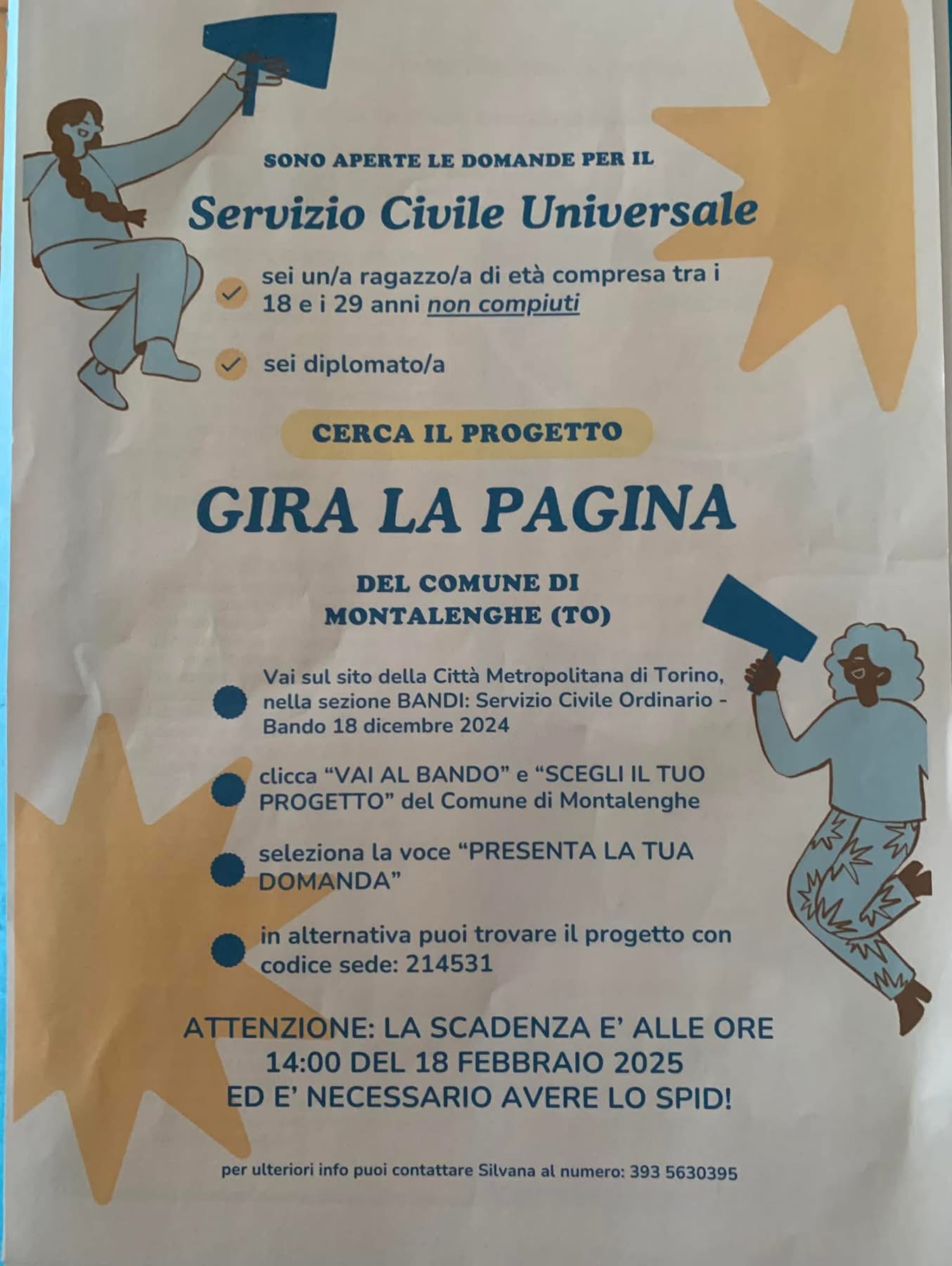 Per aderire al nostro progetto, che si chiama “Gira la Pagina” si entra nel sito della Città Metropolitana di Torino, Servizio Civile Ordinario, Bando 18 dicembre 2024.